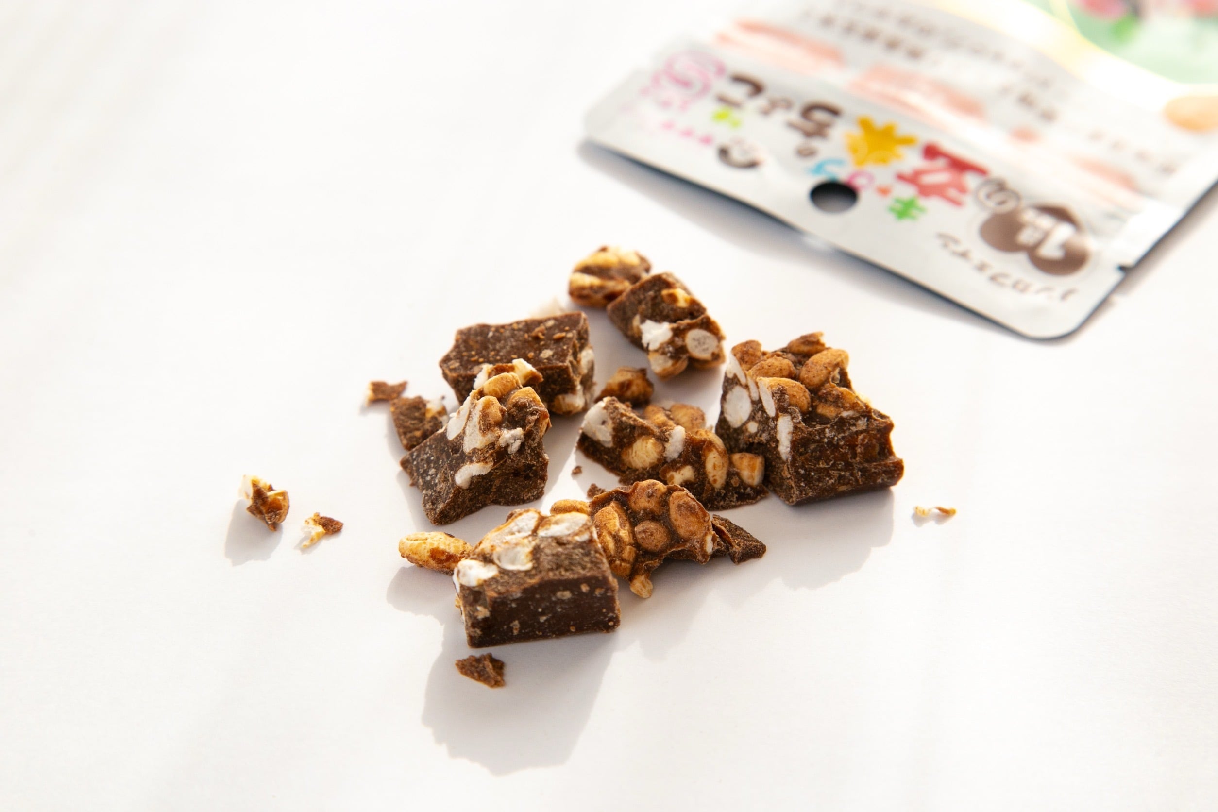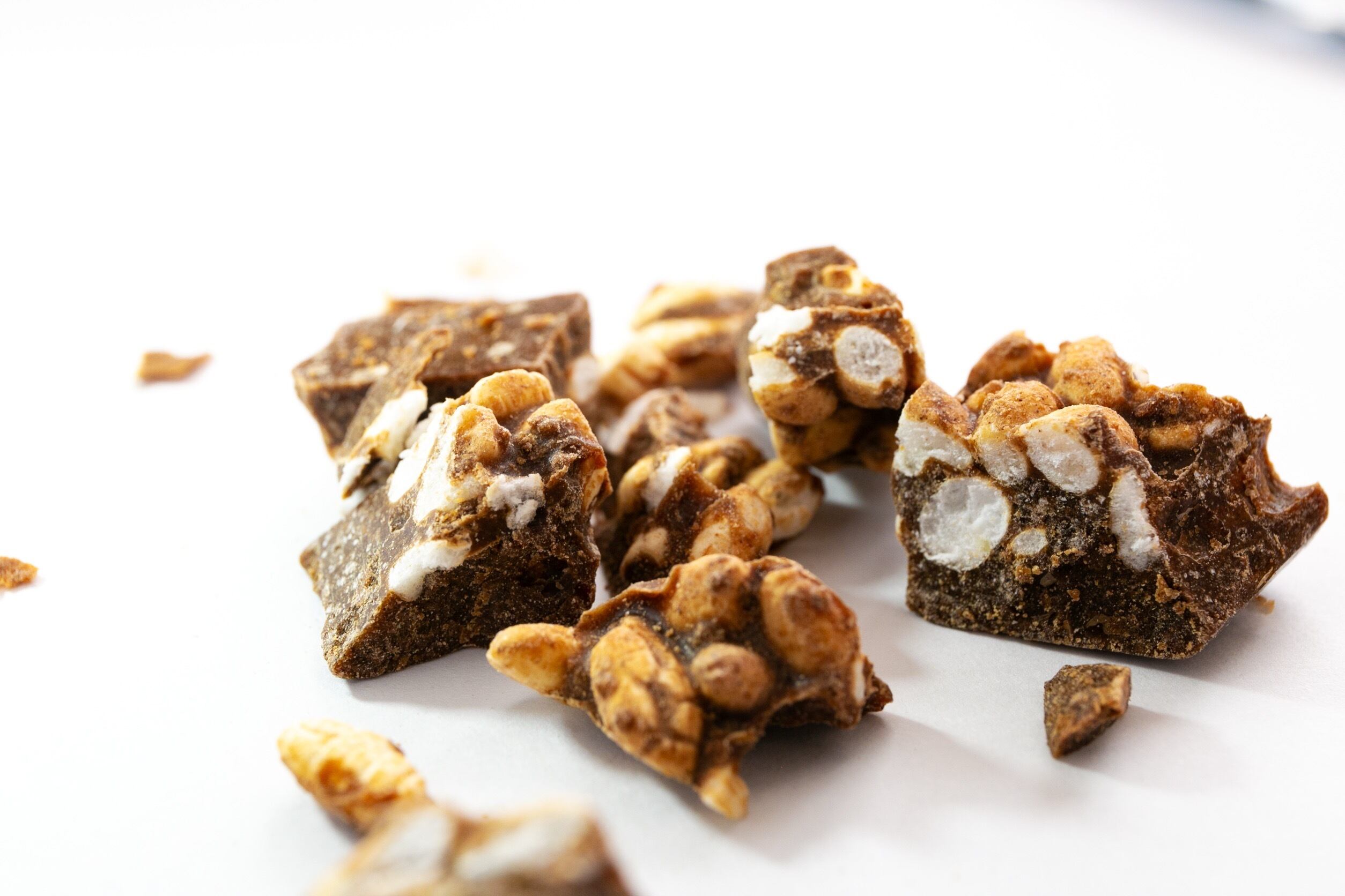 無農薬・無肥料の玄米パフに、海洋深層水からできたお塩入りの有機キャロブチョコレートを絡めました!(原材料はココアバター・キャロブ・玄米・塩のみ)